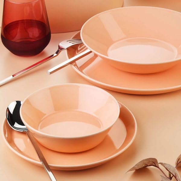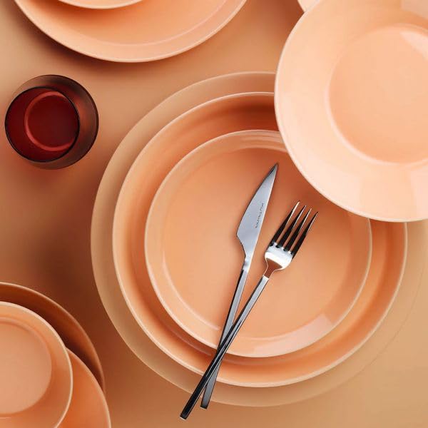 Generic - طقم ادوات مائدة عصرية من البورسلين بلون بينك خوخي واطباق واوعية مع ادوات فضية، اعداد طاولة انيق 24 قطعة