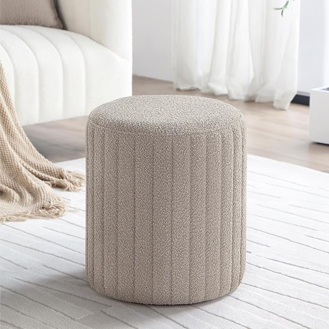 Homz - كرسي دائري عصري مع مقعد مبطن ناعم، كراسي فانيتي متعددة الوظائف للمكياج، مسند قدم منجد لغرفة المعيشة وغرفة النوم (بني داكن)