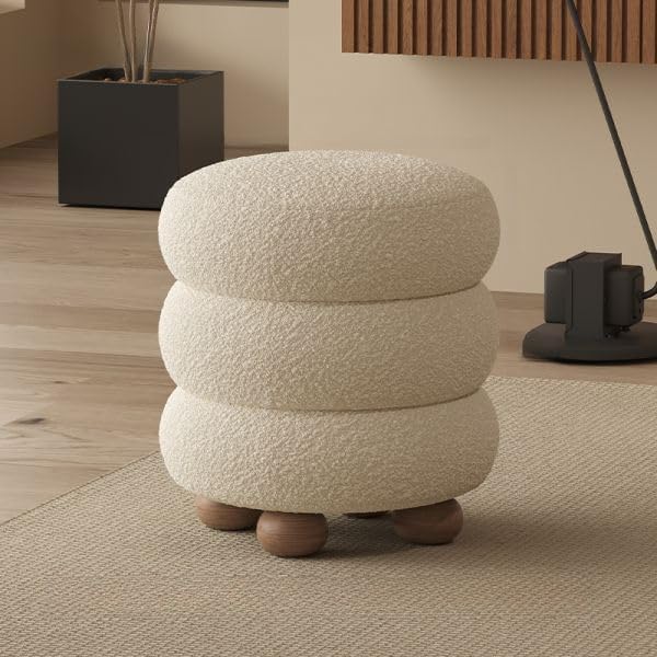 Generic - كرسي بوف دائري حديث، مقعد مريح مبطن بالفرو، قاعدة خشبية، لون كريمي، ديكور منزلي لغرفة المعيشة