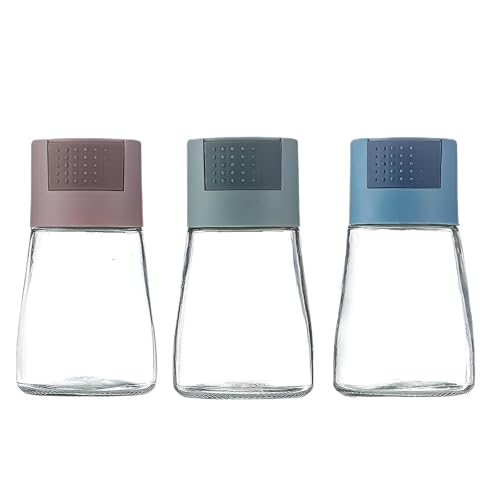 Generic - حاويات ملح وفلفل عصرية - زجاج شفاف مع اغطية بلاستيكية محكمة الغلق لنضارة التوابل المثالية وسهولة الاستخدام بيد واحدة، مجموعة من 3 قطع