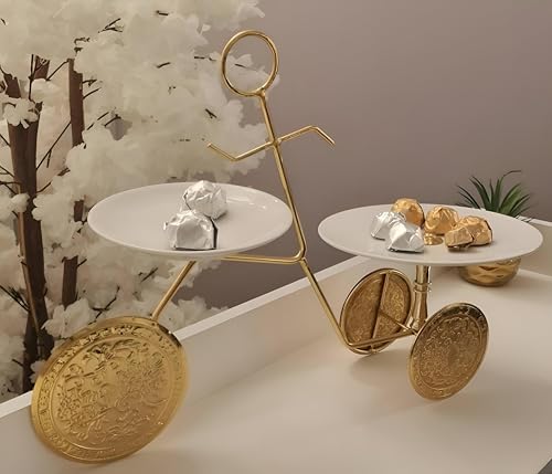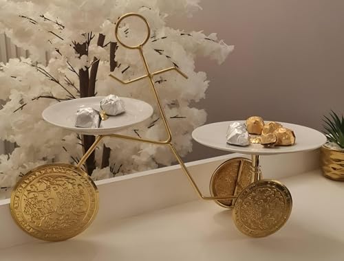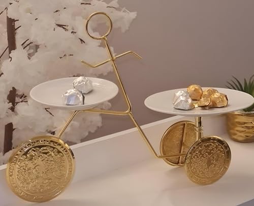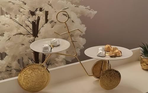 Generic - حامل أنيق على شكل عجلة مع أطباق بورسلين، لعرض الحلويات والفواكه والوجبات الخفيفة بلمسة راقية وحديثة