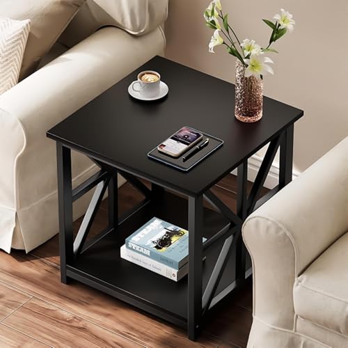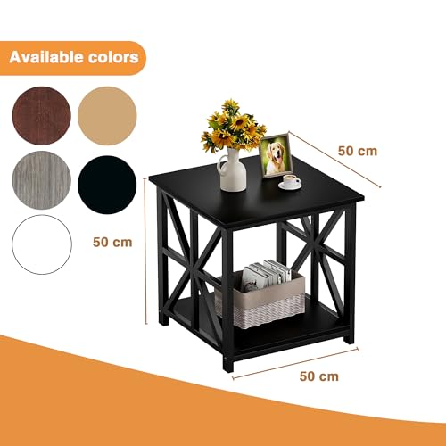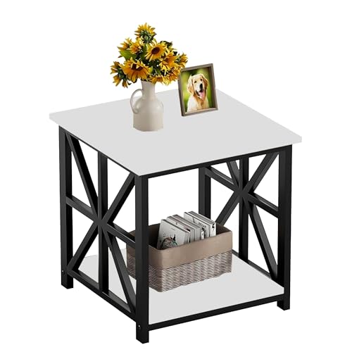 Friends Metaly - ترابيزة جانبية عصرية مع رف تخزين سفلي أنيقة وعملية لغرفة المعيشة أو غرفة النوم أو المكتب، مقاس 50 × 50 × 50 سم (عمق × عرض × ارتفاع) لون أبيض