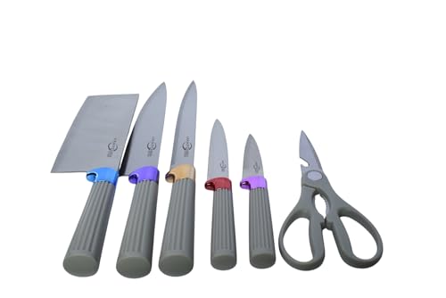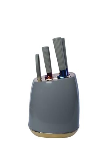 Generic - طقم سكاكين عصري من الستانلس ستيل مع رف تخزين علوي للطاولة، 7 قطع - رمادي