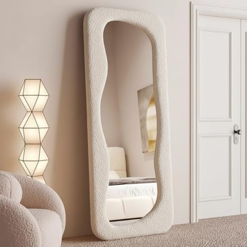 Generic - مراية استاند مودرن 190×70 سم – إطار خشب MDF مع تنجيد قماش باندا فاخر – مرايا ديكور بطول كامل لغرف النوم وغرف الملابس – من No Comment Furniture (Off White)