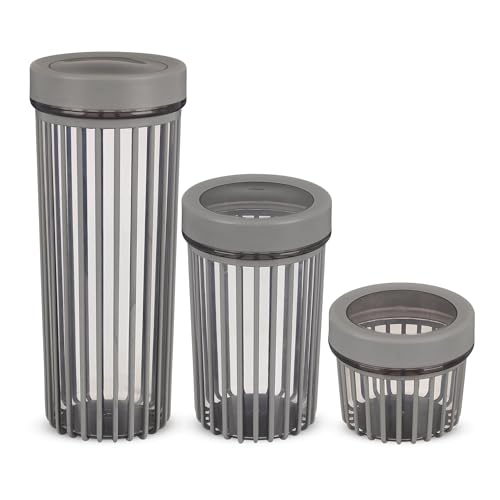 - تتضمن المجموعة: ثلاث حاويات مختلفة الحجم مثالية لتخزين مختلف السلع الجافة ومواد المؤن، مما يوفر حلول تخزين متعددة الاستخدامات