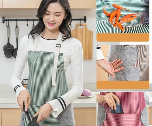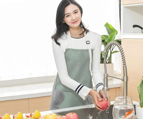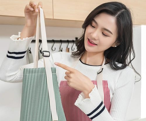 Generic - مريلة مطبخ مخططة عصرية، مريلة طويلة للطهي الخامة جلد من الداخل و من الخارج وتربروف جوانب ميكروفيبر علشان تنشفي ايدك + جيب امامي+_+