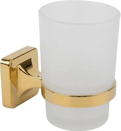 Generic - حامل أكواب فرشاة الأسنان العصري للحمام – ستانلس ستيل مقاوم للصدأ – كوب زجاج– تركيب جداري مع ملحقات التثبيت – منظم أنيق لإكسسوارات الحمام (دهبي)