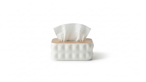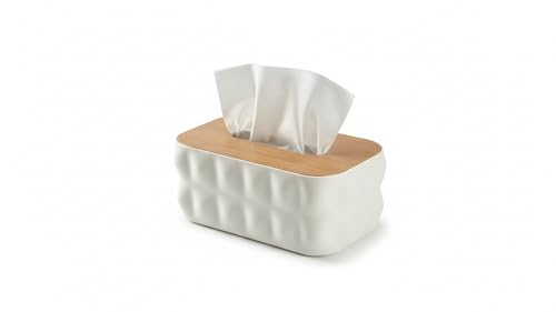 Generic - علبة مناديل مودرن بتصميم مموج وغطاء خشبي - منظم مناديل فاخر لون أوف وايت - حامل مناديل ديكور عصري لغرفة المعيشة والمكتب اللون اوف وايت