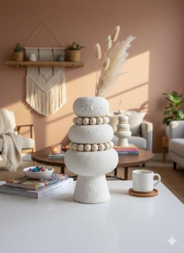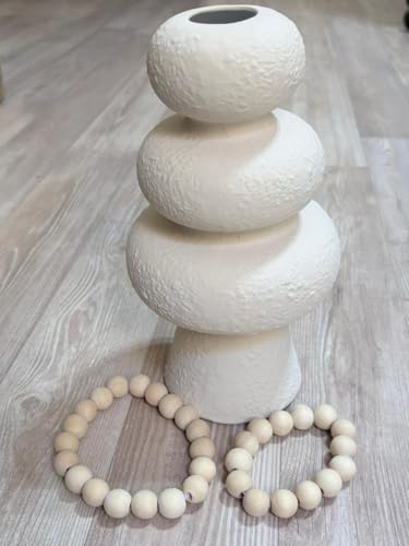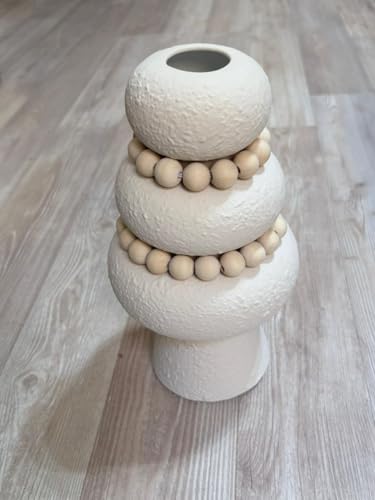 Generic - مزهرية سيراميك بيضاء عصرية مع اكليل خرز خشبي، تصميم مزخرف مكدس، ديكور منزلي، شكل وعاء ثلاثي الطبقات