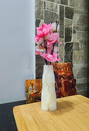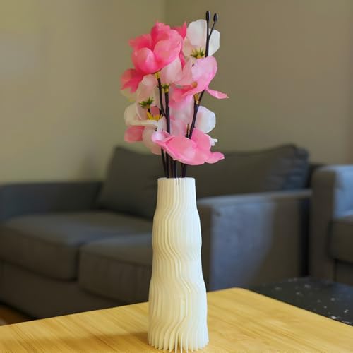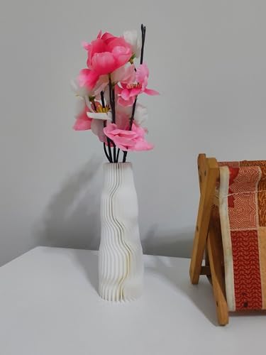 Generic - فازة عصرية مع زهور صناعية بينك وبيضاء، فازة مموجة غير قابلة للكسر لديكور المنزل وغرفة المعيشة وغرفة النوم والمكتب، أبيض