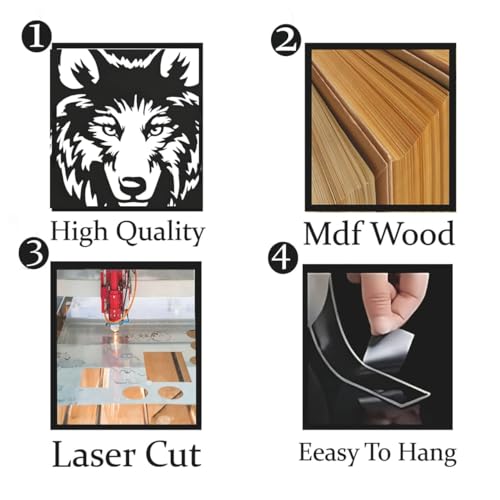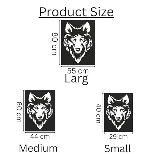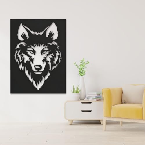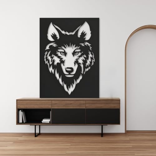Generic - لوحة فنية جدارية بتصميم راس ذئب عصري، ديكور حائط من خشب ام دي اف باللونين الاسود والابيض، متوفر في 3 احجام - L 80×55 سم، M 60×44 سم، S 40×29 سم، ديكور منزلي معاصر (كبير)
