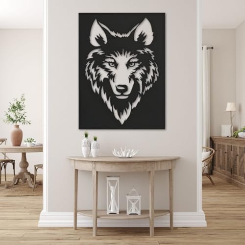 - التصميم: صورة ظلية رائعة لرأس الذئب بالأبيض والأسود تخلق جمالية جريئة ومعاصرة لديكور المنزل الحديث