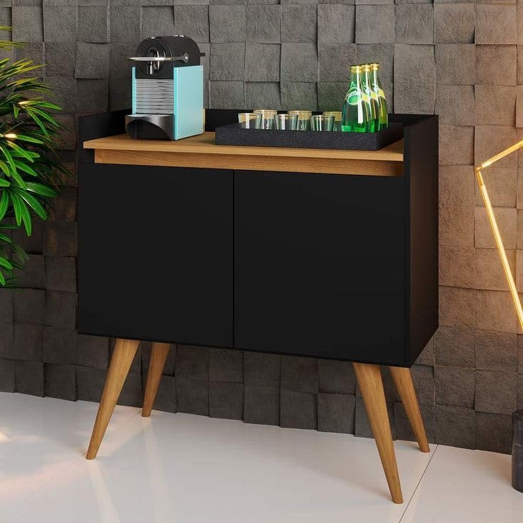Generic - دولاب بار خشبي عصري، لون أسود مع أرجل من خشب البلوط، وحدة تخزين منزلية عصرية مع جزء علوي لتقديم الطعام
