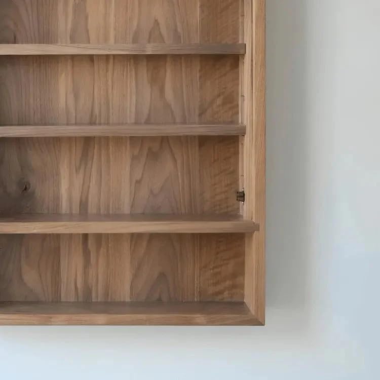 - مزايا التصميم: خزانة أدوية مثبتة على الحائط مصنوعة من الخشب الطبيعي مع جمالية عصرية، تتميز بباب واحد عاكس وحجرة رف مدمجة مريحة