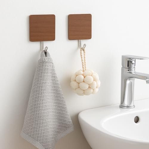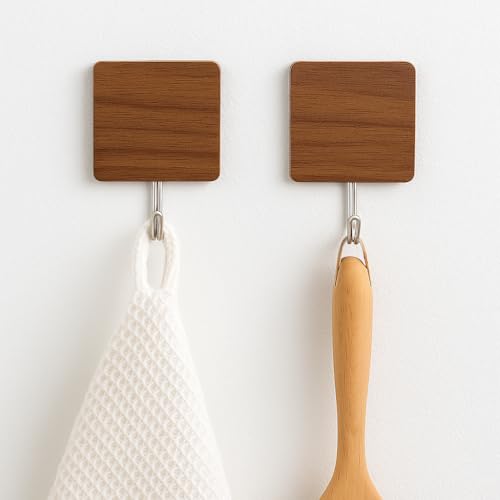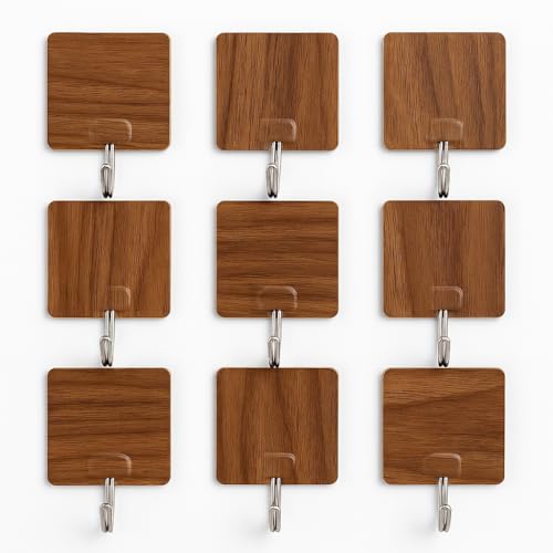 Generic - خطافات لاصقة بنمط خشبي عصري - حل تعليق قوي وأنيق وخالي من التلف