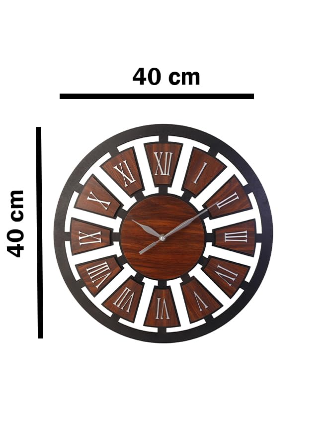 Generic - ساعة حائط دائرية خشبية حديثة، 40 سم مع أرقام لاتيني - انالوج- كوارتز- LV11