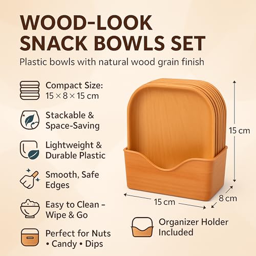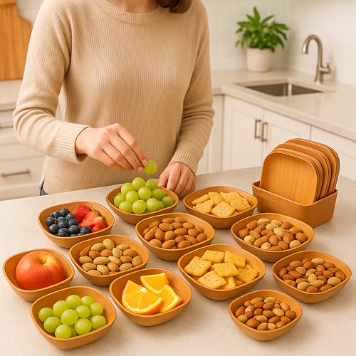 Generic - طقم أطباق تسالي خشابي بلاستيك بتصميم عصري مع حامل تنظيم – 12 طبق تقديم للضيافة والسناكس والمكسرات للمطبخ والسفرة والحفلات