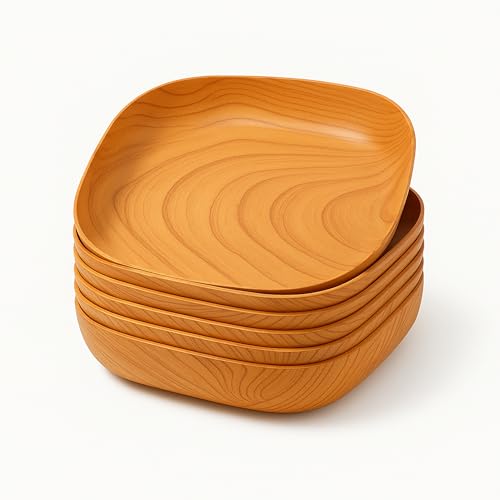 Generic - طقم أطباق تسالي خشابي بتصميم عصري مع حامل – 6 قطع + حامل، توزيع مثالي للمقبلات والمكسرات والفاكهة، خفيف ومتين وسهل التنظيف، مناسب للبيت والضيافة والحفلات