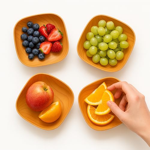 - تنظيم أنيق وذكي: 6 أطباق تسالي مربعة مع حامل مخصص لتحفظها مرتبة وتوفر مساحة على الطاولة أو داخل الخزانة.