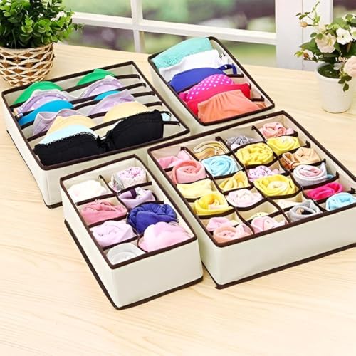 Generic - منظم ملابس داخلية معياري - مساحات تخزين قابلة للتكديس لحمالات الصدر والجوارب والاحزمة والتيشرتات، نظام ادراج من 4 قطع مع الواح قماشية جيدة التهوية