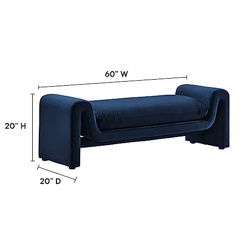 Modway - مقعد قطيفة ويفرلي بيرفورمانس بتصميم مموج فريد من نوعه بلون أزرق داكن، تنجيد مقاوم للبقع من مودواي