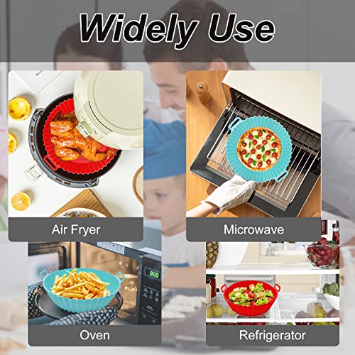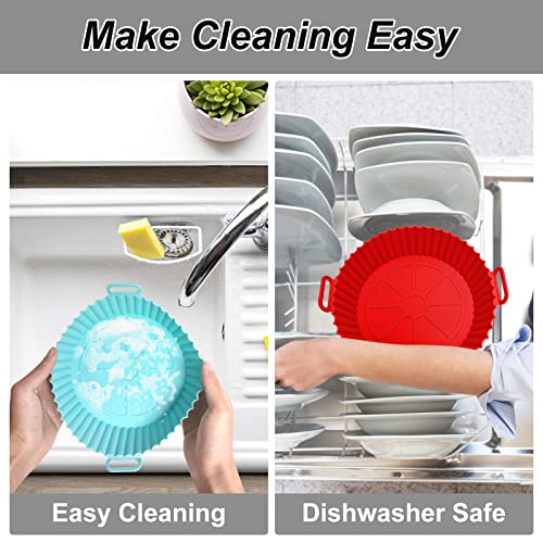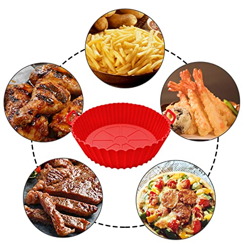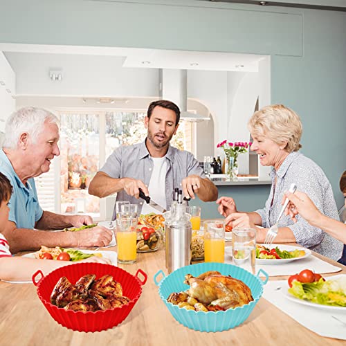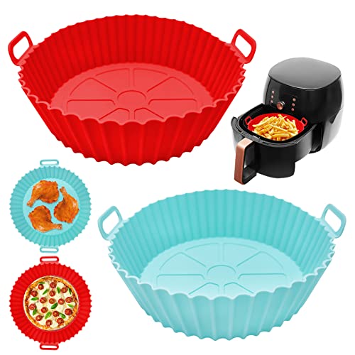 MOFELON - قطعتين بطانة وعاء قلاية هوائية من السيليكون، وعاء سيليكون للقلاية الهوائية مقاس 20 سم، ملحقات قلاية هوائية من السيليكون، استبدال بطانة ورق الزبدة لسلة القلاية الهوائية (احمر + ازرق) من موفيلون