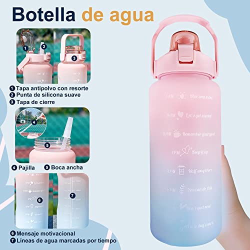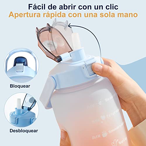 - 【زجاجة مياه تحفيزية】تسمح لك زجاجات المياه بالبقاء ثابتًا مع الترطيب، مع علامات الوقت تحفزك على تحقيق أهداف الشرب اليومية. حافظ على رطوبة جسمك طوال اليوم.