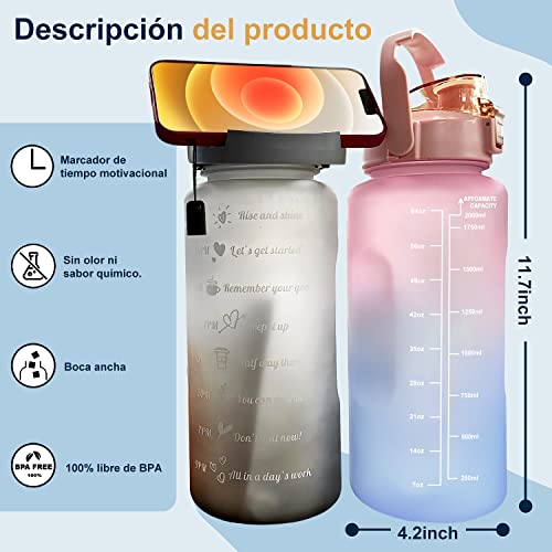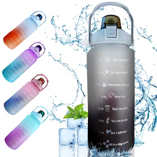 MOFIT - زجاجة مياه رياضية تحفيزية قابلة لإعادة الاستخدام خالية من البيسفينول ايه وعلامات قياس للوقت مع ماصة للتمرين والمشي وأي نشاط خارجي 2000 مل (رمادي)