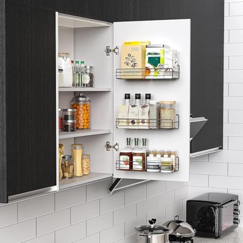 Moforoco - رف منظم توابل يثبت على الحائط من موفوروكو (6 عبوات)، رف تخزين وتنظيم التوابل بلون اسود معلق، منظم توابل لبيت المزرعة، ارفف حائط مرنة لديكور المطبخ وتنظيم المنزل