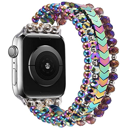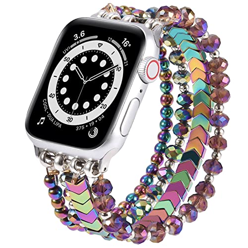 MOFREE - موفري سوار خرز متوافق مع سوار ساعة ابل 40 ملم/ 38 ملم/ 41 ملم سلسلة 8/7/اس اي/6/5/4/3/2/1 للنساء سوار مرن عصري مصنوع يدويا لاساور اي ووتش ملونة