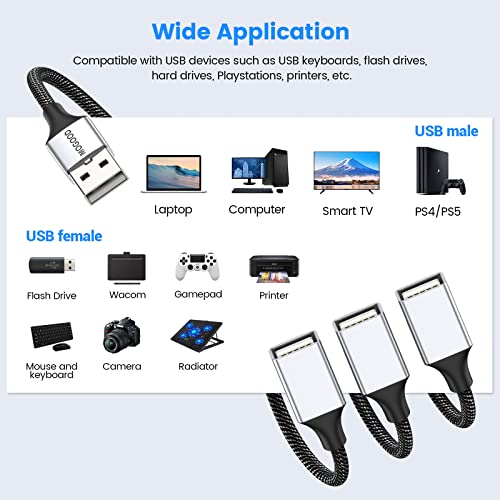 MOGOOD - كابل مقسم USB 3 في 1، مقسم طاقة USB 1 ذكر إلى 3 أنثى USB 2.0 محول 1 إلى 3 USB، كابل تمديد USB متعدد المنافذ للشحن/نقل البيانات/اللابتوب/ماك من موجود
