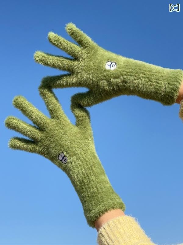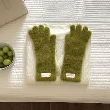 Generic - قفازات طويلة للنساء من موهير، قفازات شتوية انيقة ناعمة دافئة بلون اخضر زيتوني، مقاس واحد