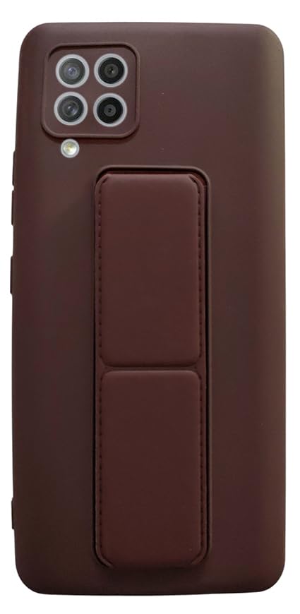 Generic - جراب خلفي سيليكون متوافق مع سامسونج A42 مزود بحامل ومقبض يد من موهولجي - عنابي
