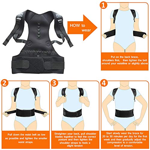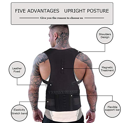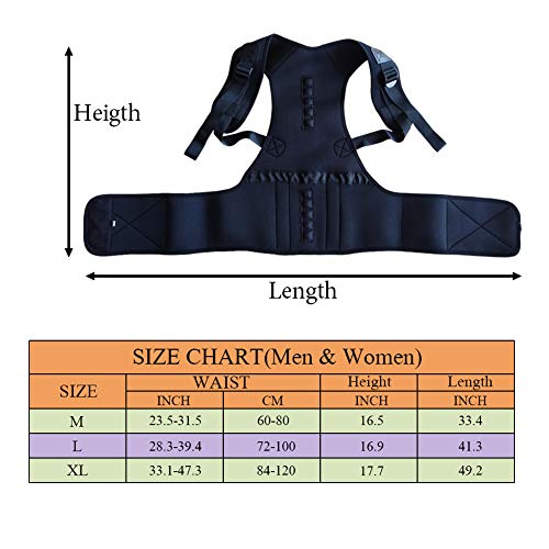 MOHUACHI - دعامة تصحيح وضعية الظهر دعم مغناطيسي للفقرات الصدرية واسفل مع حزام داعم لتخفيف الام وتحسين الانحناء التاتبي لالام اسفل واعلى للرجال والنساء اسود مطور XL قطن من موهواتشي