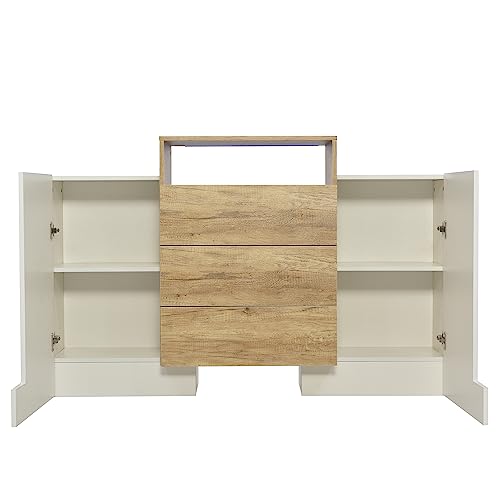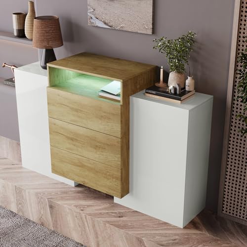 Moimhear - دولاب أدراج عصري بلون أبيض وخشبي شديد اللمعان، مع تأثيرات إضاءة LED للمنزل وغرفة المعيشة، متعددة الألوان، 140 سم