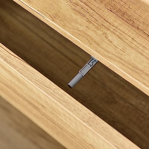 - يجمع الجانب/الخزانة العصرية الخاصة بنا بين اللمسة النهائية البيضاء شديدة اللمعان ولون الخشب الدافئ للحصول على حل تخزين أنيق.