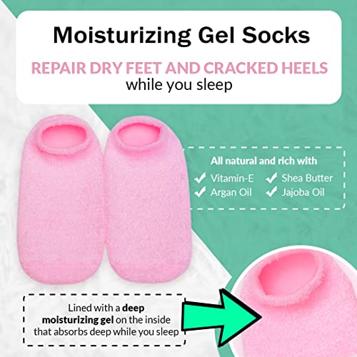 Spaceshoop - شرابات جل لترطيب القدمين وعلاج مشاكل جفاف القدمين وتشققات الكعبين، مناسبة للرجال والنساء، زوج واحد، لون وردي