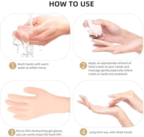 - ✨【كيفية الاستخدام】: استعمل جوانتي الجل المرطب لتغذية يديك، وذلك لمدة 20-40 دقيقة في كل مرة، بمعدل 3-5 مرات أسبوعيًا. قبل استخدام الجوانتي، يمكنك دهن يديك ببعض كريم اليد أو المستحضر وتدليكهما جيدًا للمساعدة في الامتصاص.