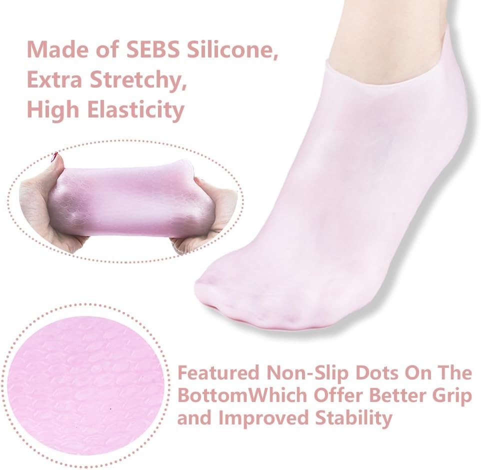 - أفضل شرابات جل مُرطبة: توفر شرابات السيليكون الناعمة، معالجة مركزة لترطيب وتنعيم الجلد الصلب والجاف والخشن والمتشقق وعلاج الأصابع والكعبين. شرابات جل سبا تُرطب القدمين وتعوض نقص الماء والعناصر المغذية لبشرة القدمين. شرابات سيليكون للنساء