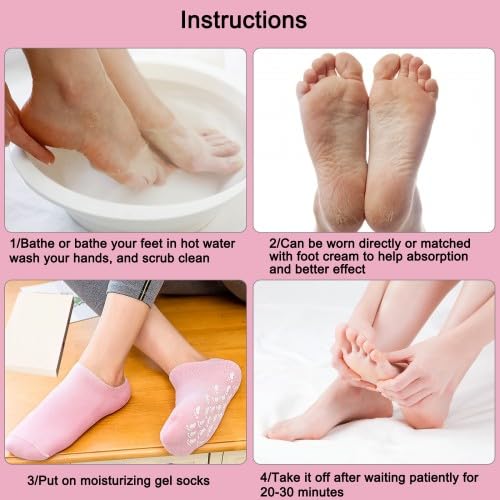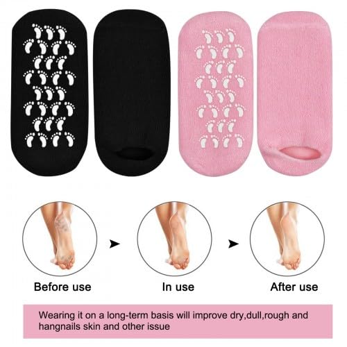 - 【الخامة والمقاس】جوارب الترطيب مصنوعة من القطن، ناعمة وقابلة للتمدد. يبلغ مقاس الجوارب الجل حوالي 21.5 × 10.5 سم. مقاس واحد يناسب معظم مقاسات أقدام النساء.