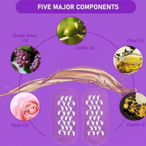 Generic - شرابات جل ناعمة مرطبة للكعب الجاف والمتشقق بزيت الجوجوبا وزيت الزيتون وفيتامين اي للمنتجع الصحي، لون أرجواني، مقاس واحد