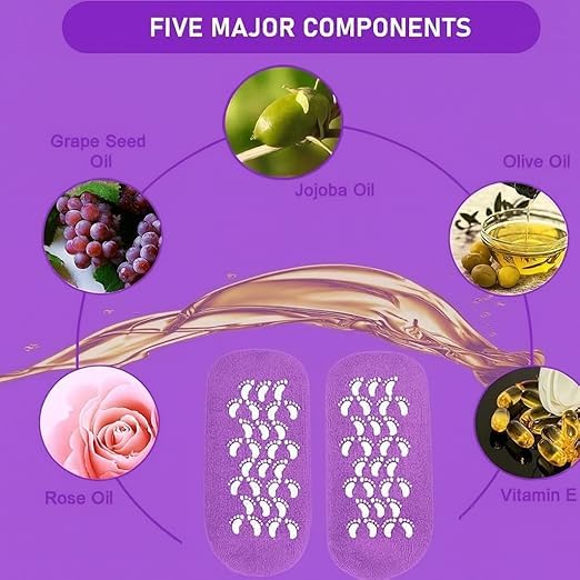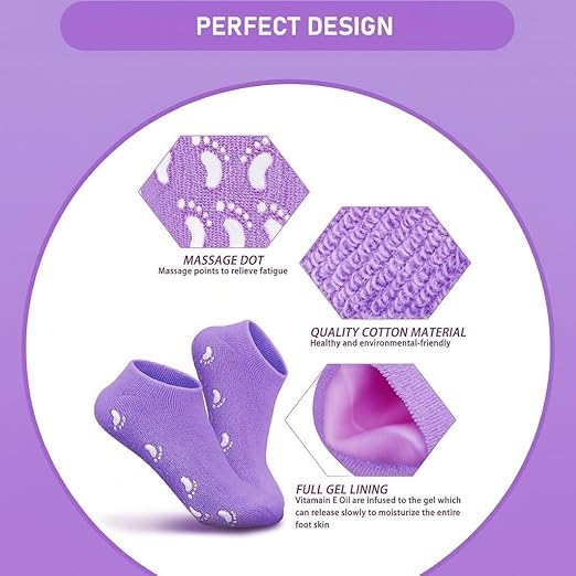 - ترطيب عميق للكعب الخشن: ارتدي هذه الجوارب المرطبة - جوارب جل ناعمة غنية بزيت الجوجوبا وزيت الزيتون وفيتامين E تساعد على تنعيم الكعب الجاف والمتشقق حتى تشعر القدمين بنعومة بعد الاستخدام المنتظم. مريح في الارتداء أثناء الاسترخاء أو النوم.