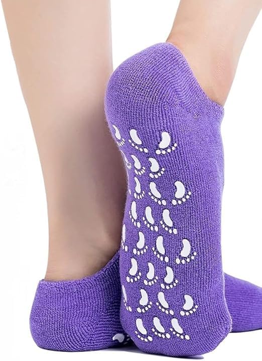 Generic - جوارب جل مرطبة للكعب الجاف والمتشقق مع زيت الجوجوبا وزيت الزيتون وفيتامين E، جوارب سبا تنعيم مقاس واحد (ارجواني)