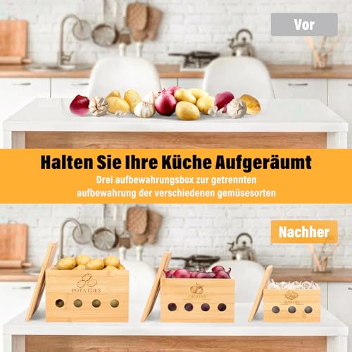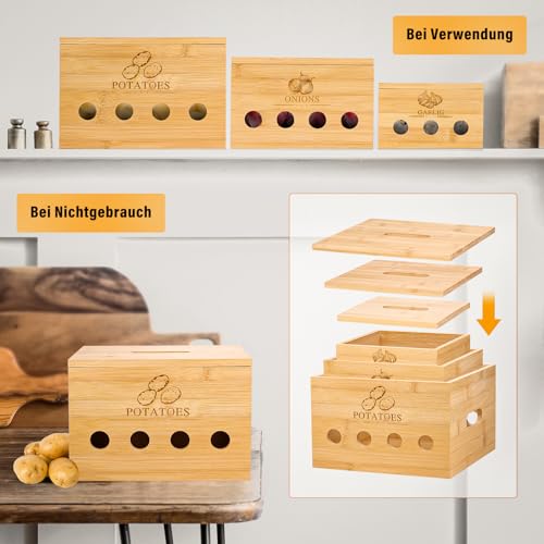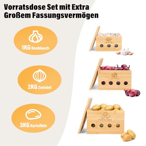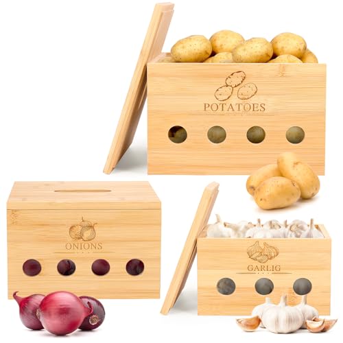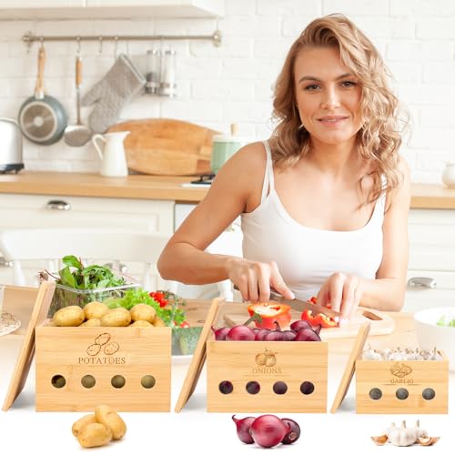 MOJIEZUO - صندوق تخزين البطاطس عبوة من 3 حاويات والبصل والثوم مع غطاء وعاء البصل يحافظ على الخضروات طازجة لفترة اطول