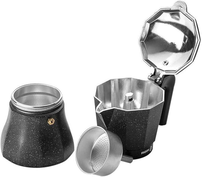 - تصميم كلاسيكي: ماكينة تحضير الإسبريسو على شكل ثماني الأضلاع مصنوعة من خليط الألومنيوم المتين مع لمسة نهائية رمادية غامقة، مثالية لتخمير القهوة الإيطالية الأصلية.
