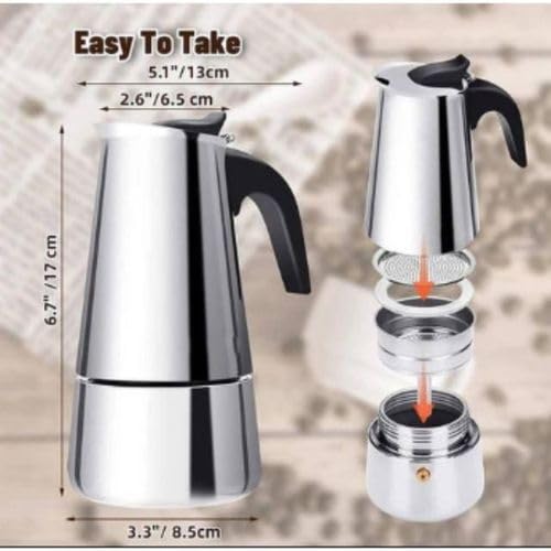 Spaceshoop - ماكينة تحضير القهوة الإيطالية من موكا بوت - تصميم أنيق من الفولاذ المقاوم للصدأ بسعة 4 أكواب