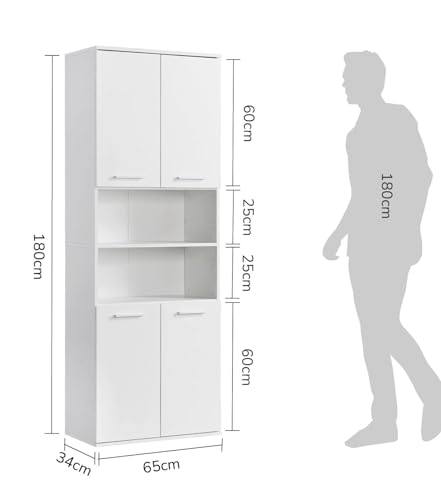 mokebo - خزانة حمام عمودية بيضاء "ذا كابتن" من موكيبو، دولاب حمام عريض، خزانة حمام طويلة ورف حمام، مصنوعة من الخشب، مقاس 180 × 65 × 34 سم (ارتفاع × عرض × عمق)، أبيض غير لامع