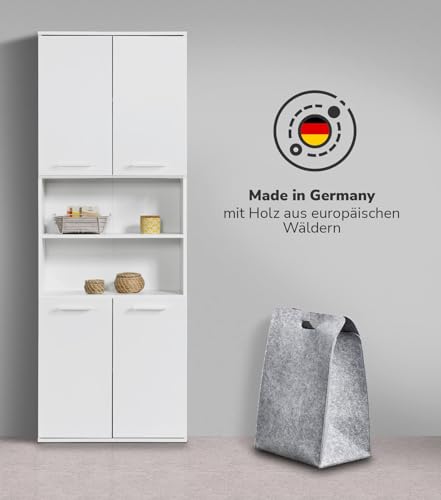 - منتج عالي الجودة مصنوع في ألمانيا. الخزانة العمودية بأبعاد عرض وارتفاع مختلفة مصنوعة من خشب ليفي متوسط الكثافة وعالي الجودة أو ألواح خشبية مضغوطة مع طلاء متين باللون الأبيض شديد اللمعان (جهة الأمام فقط) أو أبيض مطفي ورصاصي في ولاية شمال الراين - وستفاليا. بفضل تصميمها الوظيفي، توفر مساحة تخزين كبيرة حتى في حالة المساحة المحدودة.