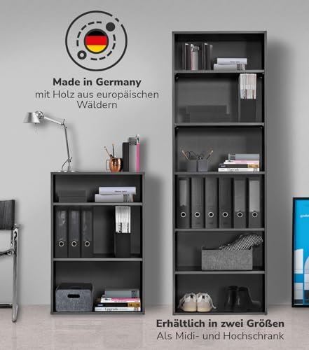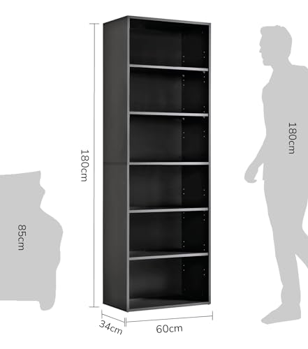 mokebo - خزانة كتب خشبية "ذا بوك دود" من موكيبو، أسود ورمادي ورصاصي، رف أحذية خشبي، رف حفظ الملفات، رف قائم لغرفة المعيشة والمكتب وغرفة الأطفال، رف جداري كبير، عرض 60 سم، غير لامع