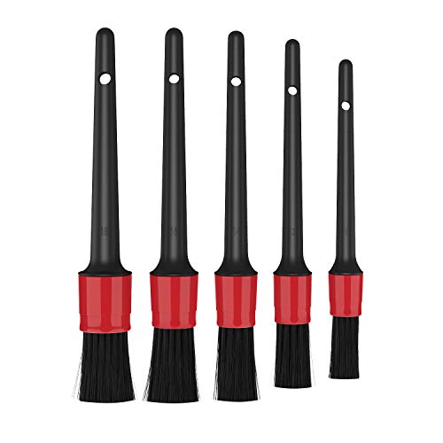 MoKo - مجموعة فرشة تنظيف السيارة من موكو فرش السيار 5 عبوات فرشاة لتنظيف العجلات والمحرك والشعارات الداخلية وفتحات التهوية الخارجية والداخلية